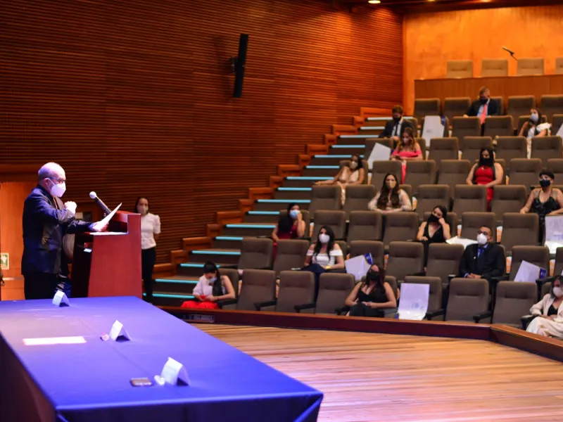La ceremonia estuvo presidida por el rector Luis Felipe Gómez, S.J., quien en su discurso motivó a los nuevos egresados a ser actores de cambio, en el que tendrán que hacer frente a diversos retos que el actual contexto impone. "No solamente deberán echar mano de sus conocimientos disciplinares, sino que deberán hacer gala de su ingenio y su capacidad de adaptación con el fin de dar un manejo inteligente e innovador a estos desafíos de la actual crisis", recalcó el padre rector.